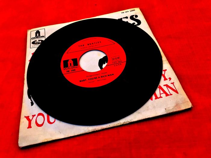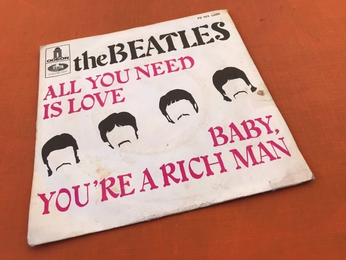 (article vendu en l' état, état d' usage voir toutes les photos) Vinyle 45 tours The Beatles All you need is love (1967) ODEON FO 103 LUXE A All you need is love B Baby you're a rich man