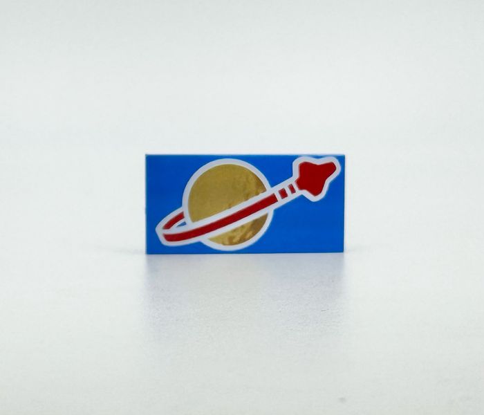 Lego Accessoires Space : Tile 2x4 Bleu Logo Space Classic - NEUF