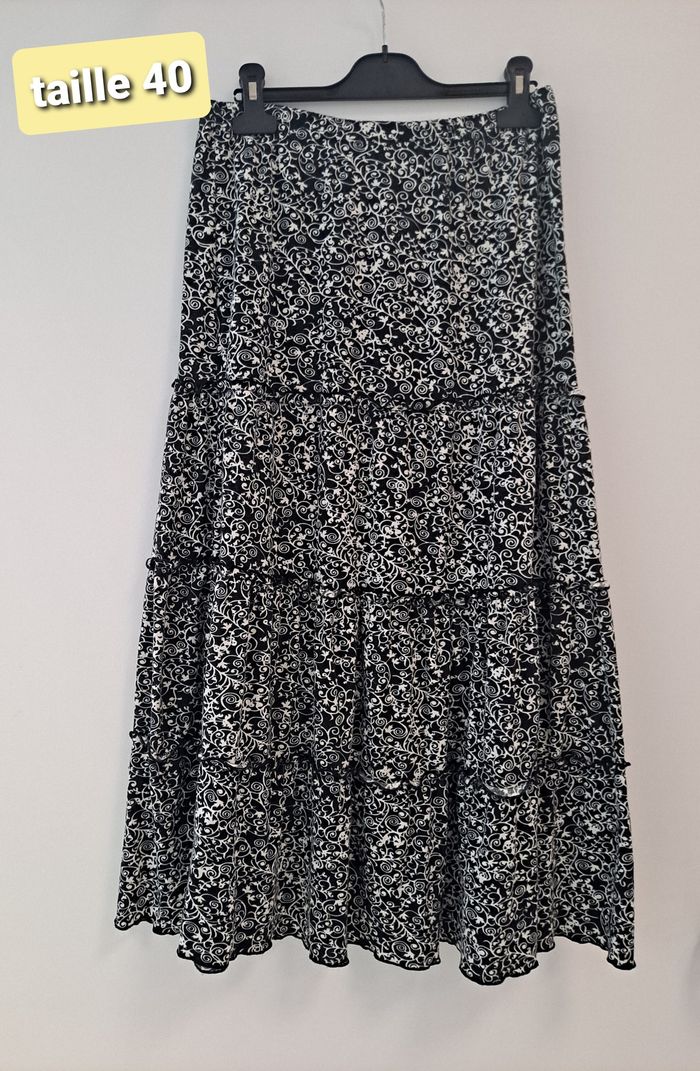 jupe longue noire et blanche motifs arabesques fleurs taille 40 - photo numéro 1