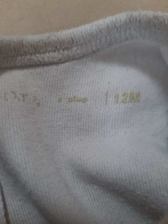 pyjama en velours blanc, de la marque Gémo, en taille 12 mois fermeture par boutons pressions dans le dos inscription : mon amour motifs : pois formant un cœur En très bon état Remise en main propre possible dans le secteur de Pont-Audemer / Beuzeville / Pont-l’Evêque. Envoi possible. N'hésitez pas à faire un lot pour amortir les frais de port et les frais de protection acheteur. 📦 😊 Vêtements de la taille naissance à la taille 3 ans disponibles. Jouets et livres disponibles. N'hésitez pas à me demander. Tout n'est pas encore en ligne...