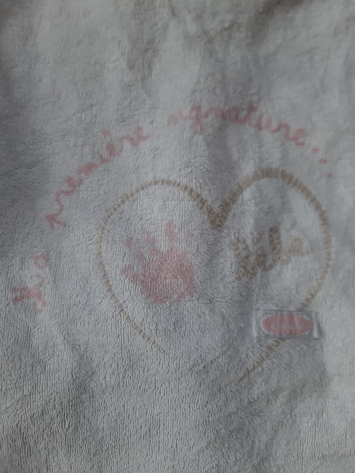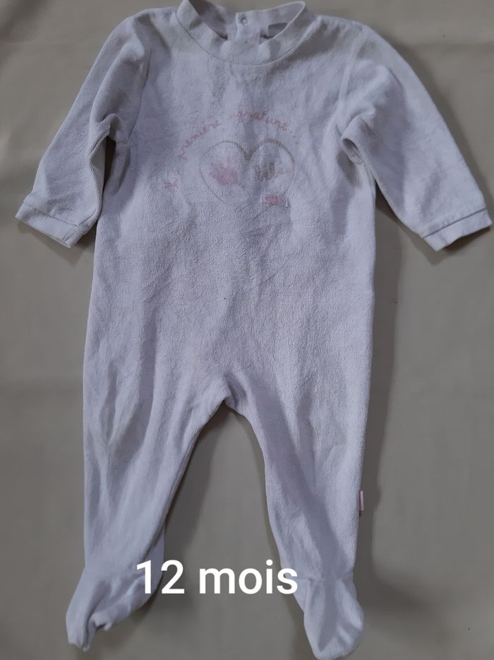 pyjama en velours rose très pâle, de la marque absorba, en taille 12 mois fermeture par boutons pressions dans le dos motifs : empreinte de main, cœur inscription : Ma première signature... bébé En bon état. Remise en main propre possible dans le secteur de Pont-Audemer / Beuzeville / Pont-l’Evêque. Envoi possible. N'hésitez pas à faire un lot pour amortir les frais de port et les frais de protection acheteur. 📦 😊 Vêtements de la taille naissance à la taille 3 ans disponibles. Jouets et livres disponibles. N'hésitez pas à me demander. Tout n'est pas encore en ligne...