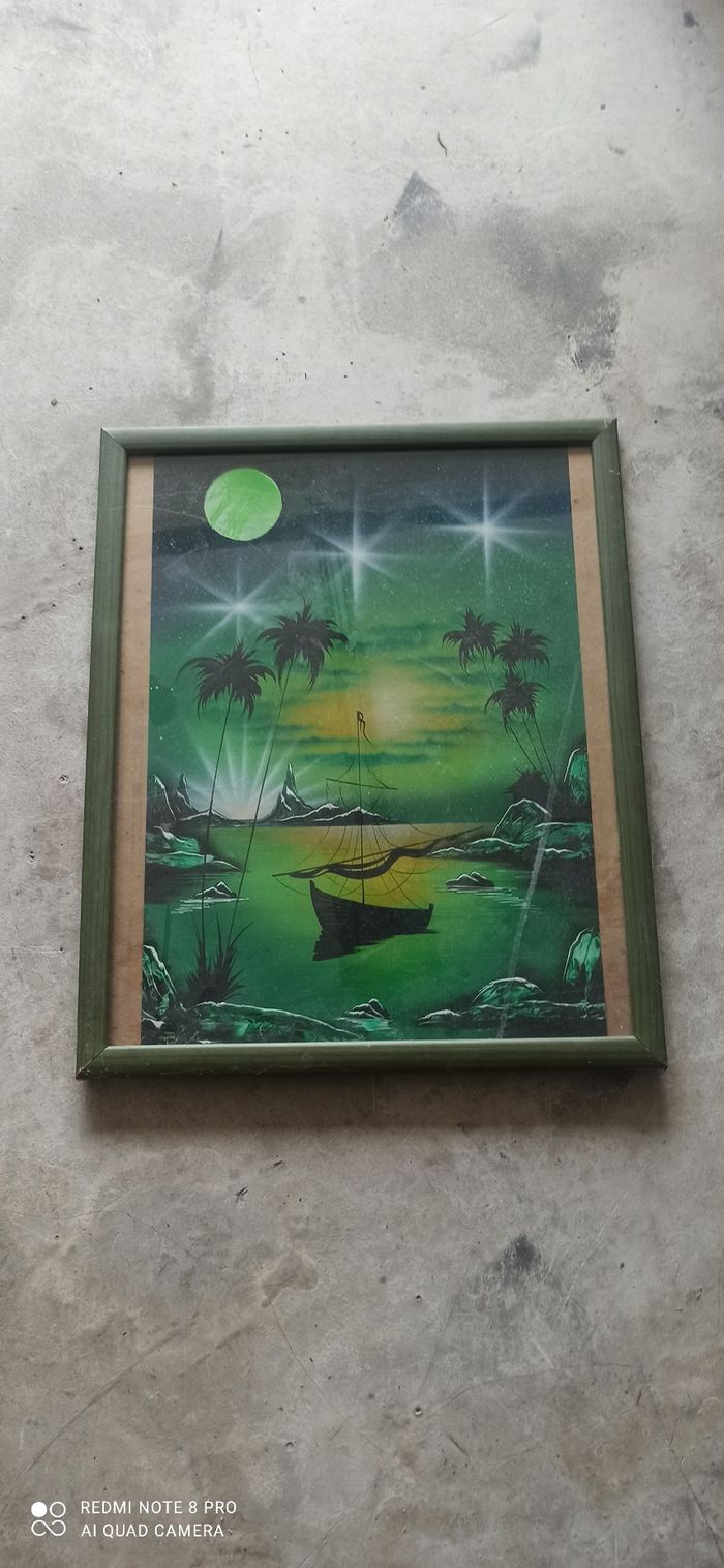 Vends un cadre paysage peinture a la bombe 53 sur 43 cm