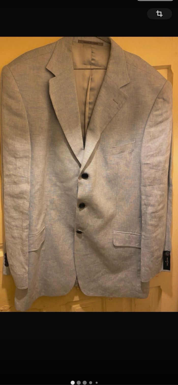 Magnifique veste en lin Daniel Hechter couleur bleu ciel , 100% lin , doublure viscose , coupe ajustée , neuve jamais portée , taille 52 It équivalent à un 54 L France ! Valeur neuf 279€
