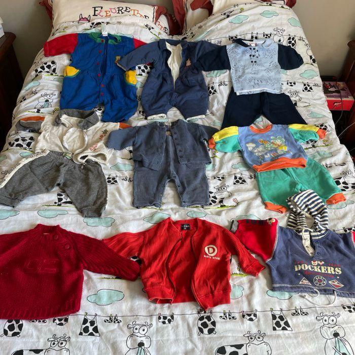 Bonjour lot de 15 pièces garçon vintage 6 mois 2 combis 4 ensembles 1 pantalon 1 sweat 1 pull 2 vestes