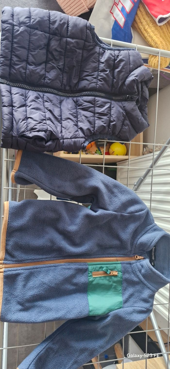 Je vends un lot doudoune sans manches + polaire en excellent état. Taille 18 mois.