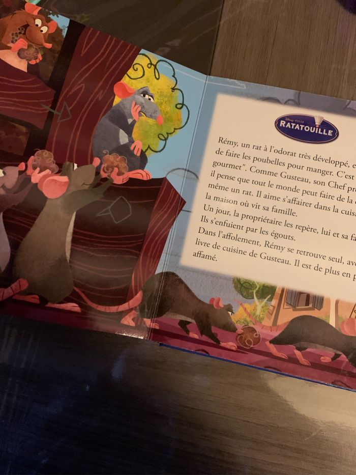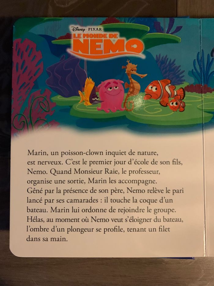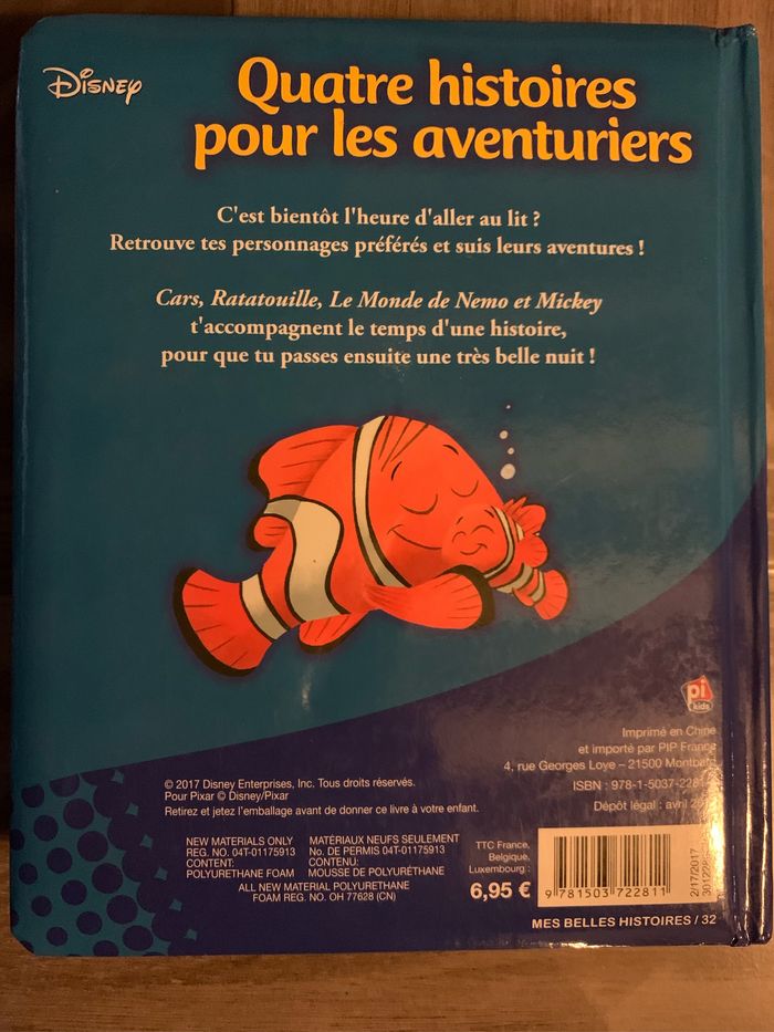 Livre avec quatre histoires Disney : Cars Le monde de nemo Ratatouille Mickey Pages cartonnées avec de jolies illustrations à chaque page Très bon état