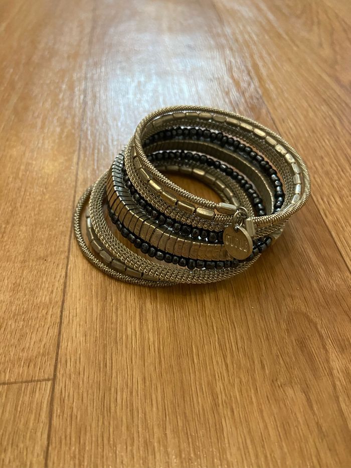 Bracelet manchette argenté et noir femme - photo numéro 2