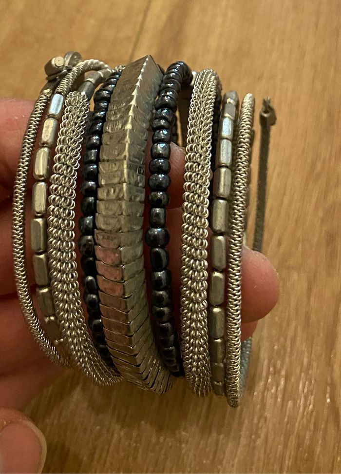 Bracelet manchette noir et argenté Métal argenté