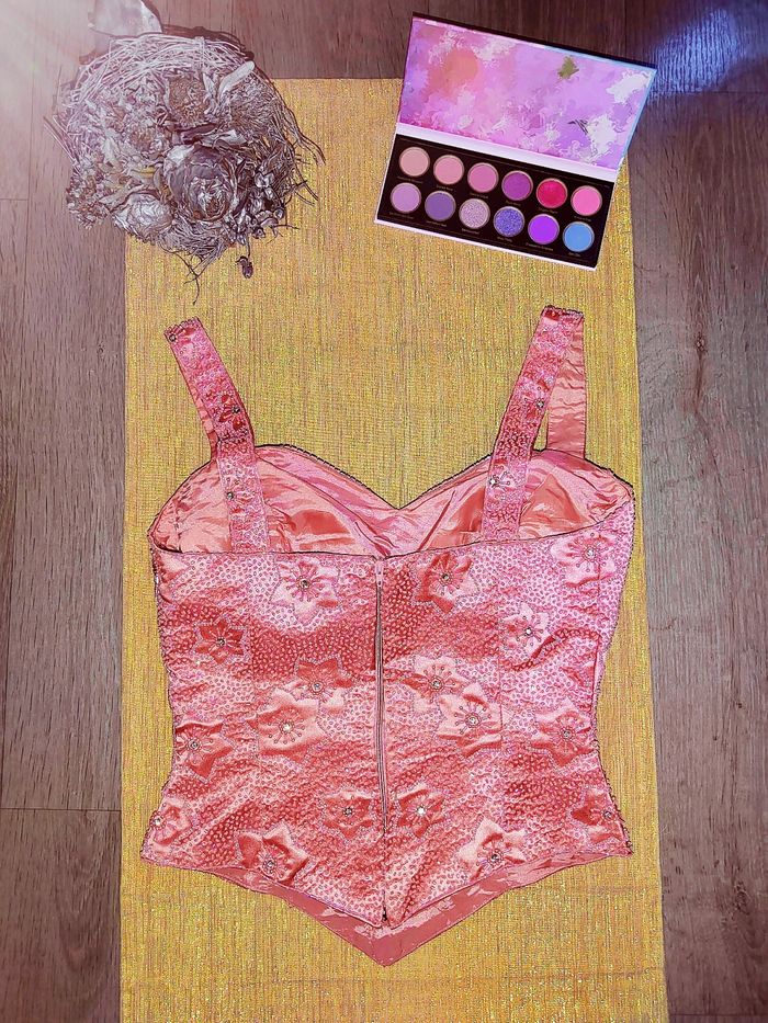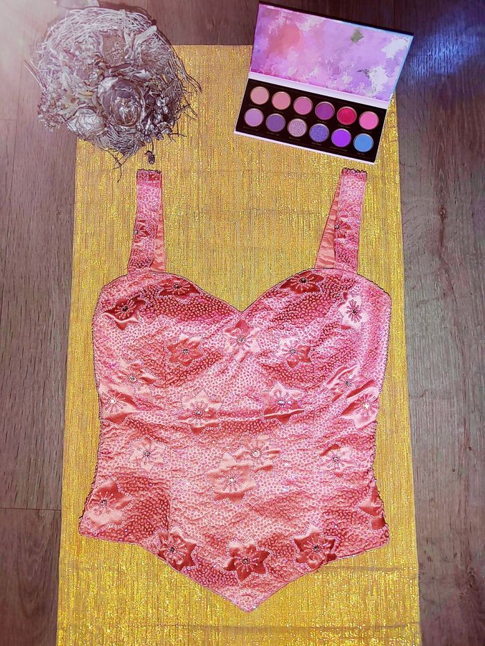 Modèle unique, barbie , entièrement perlé, il brille de mille feux, tissu de haute qualité épais avec doublure satinée et coques au niveau de la poitrine Couleur vieux rose Taille 38FR sur l'étiquette mais correspond plutôt à une taille S, convient à une petite poitrine.
