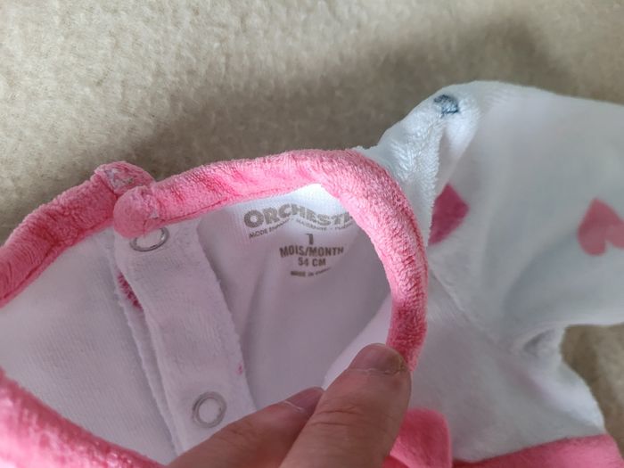 Pyjama orchestra 1 mois 54 cm En très bon état Velours blanc et rose