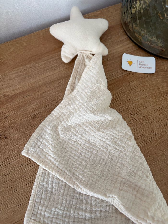 Doudou lange gaze de coton Étoile beige écru crème Très bon état Zeeman À noter : plus d'étiquette Réf : D6