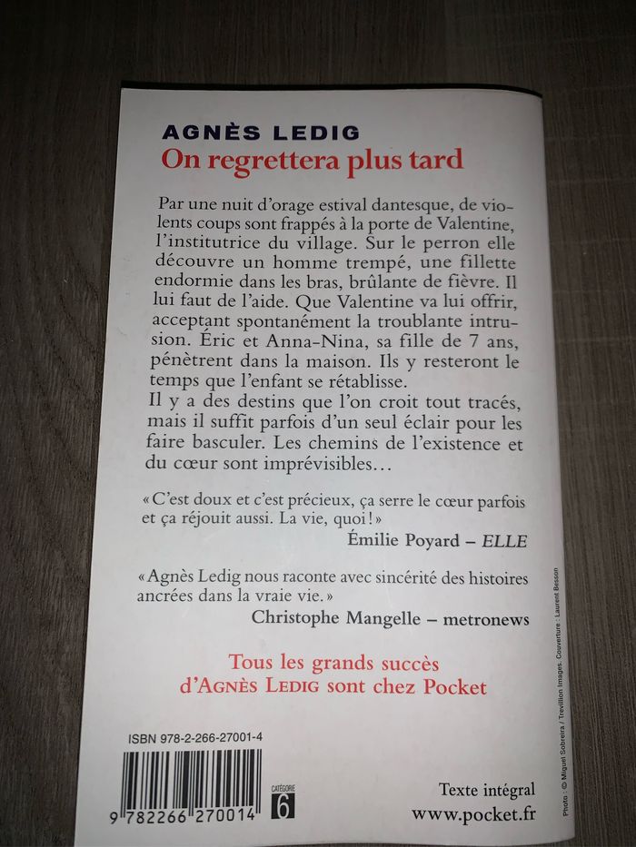On regrettera plus tard Livre de Agnès Ledig Édition pocket 2016 Bon état