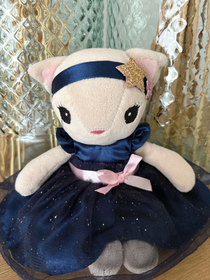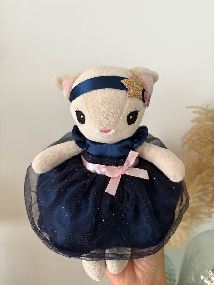 Peluche chat robe bleu marine tulle - photo numéro 1