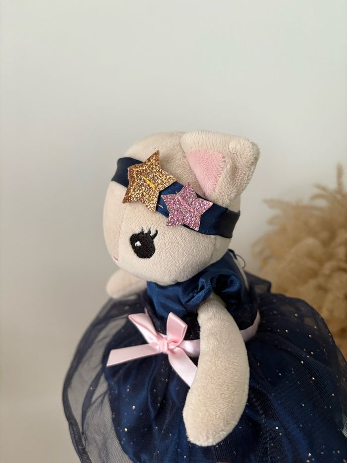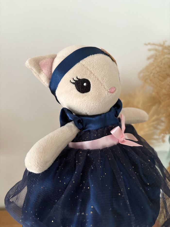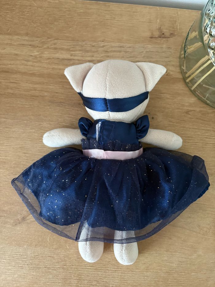 Peluche chat robe bleu marine tulle - photo numéro 7