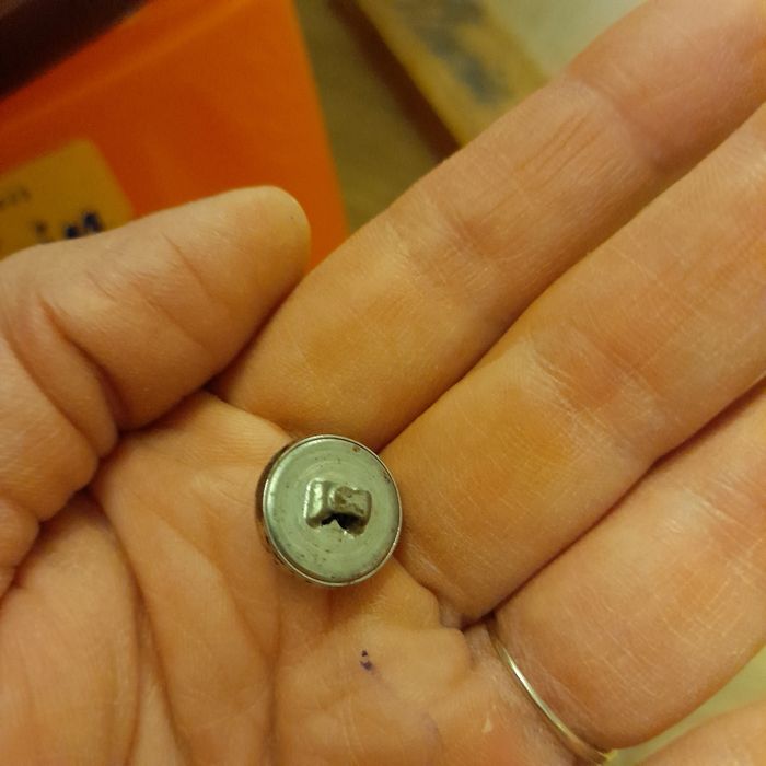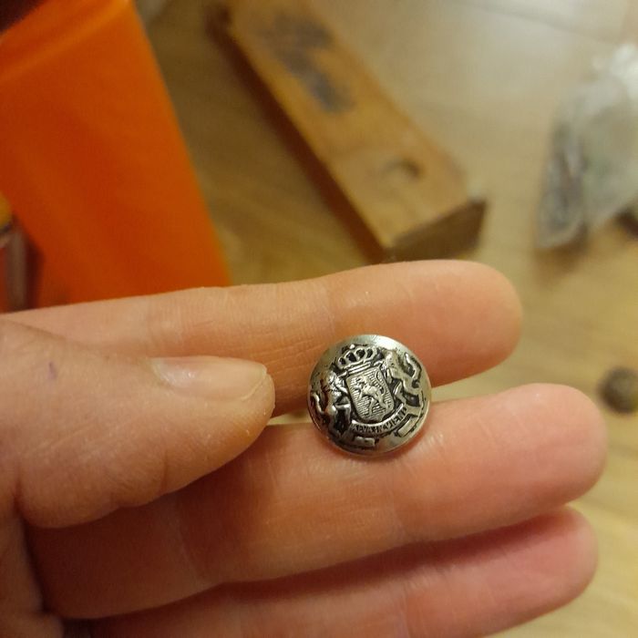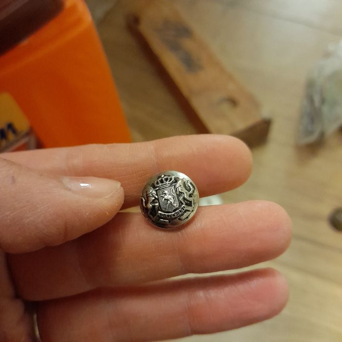 Bouton vintage argenté blason lion, un lion de chaque côté et couronne.