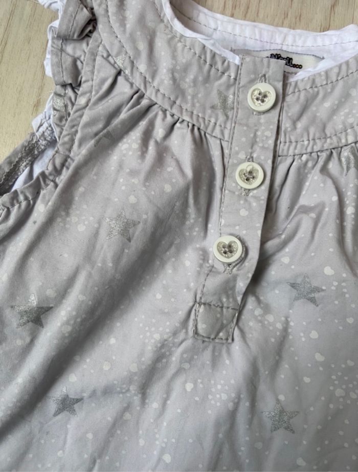 robe grise et blanche TAPE À L’ŒIL taille 6 mois details étoiles argentées sur la robe, s’ouvre devant à l’aide des boutons BON ÉTAT #bébéfille #bebe6mois #printemps #été Retrouvez tous mes articles bébé 6 mois : #ixfeelxinsanebebe6mois