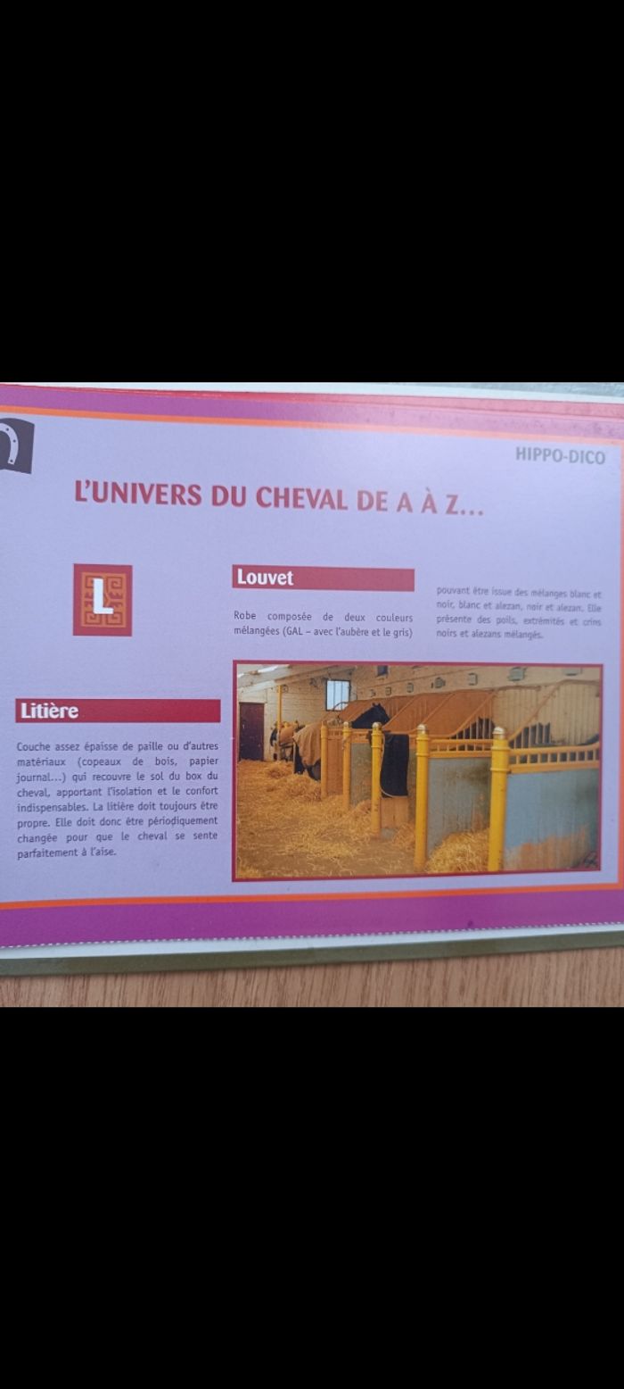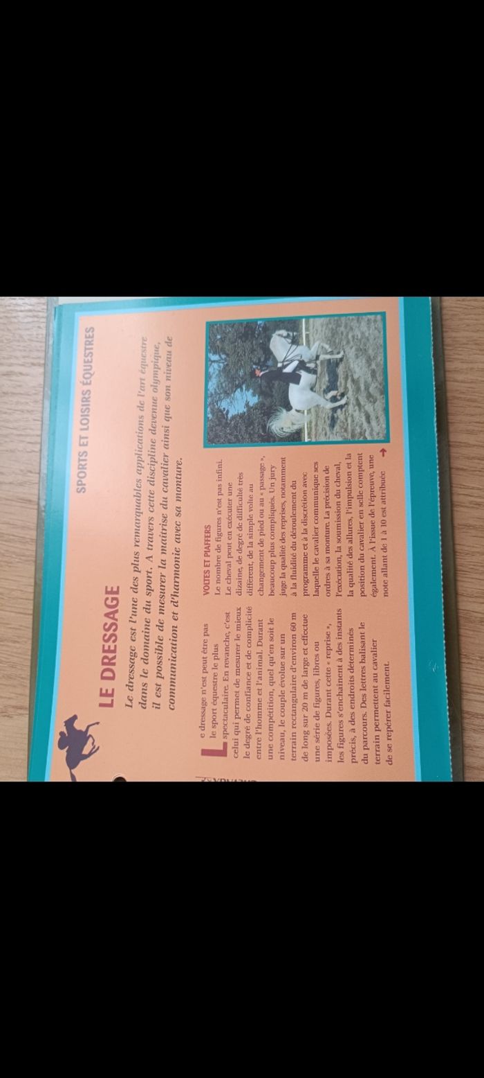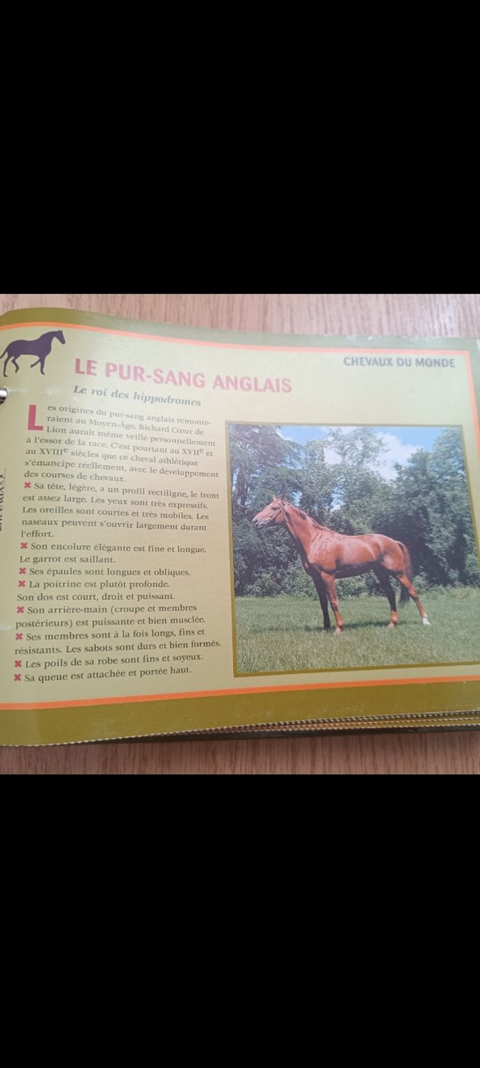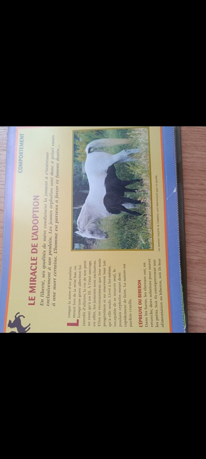 Livre présenté avec des fiches dans un classeur qui explique tout sur les secrets des chevaux... Un peu abîmé ( voir les deux dernières photos) mais reste après en bon état malgré ça ! Pour adolescent ou adulte !