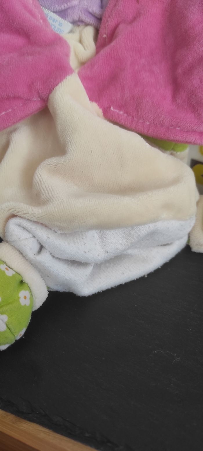 Papillon nounours doudou marionnette beige vert rose aile ancien Fleur Rond - photo numéro 3