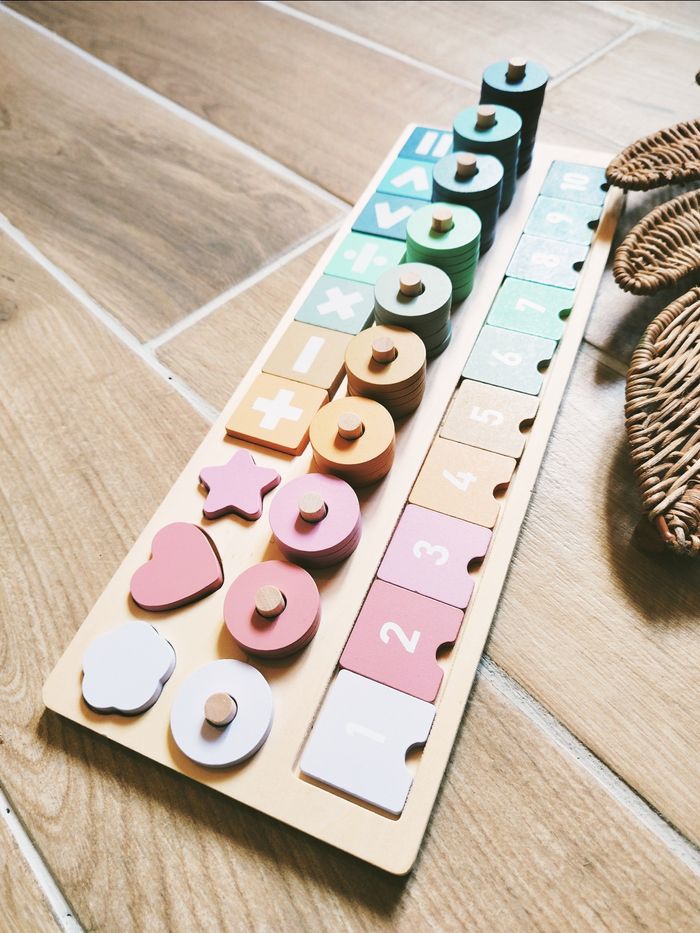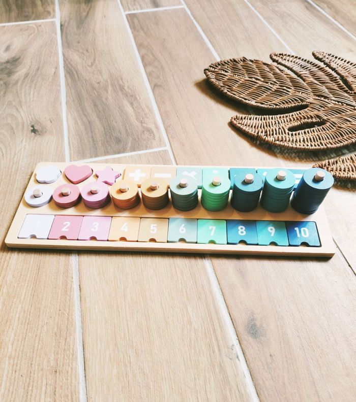 🔢Grande planche apprentissage des calculs avec numéros et formes à encastrer en bois JB977