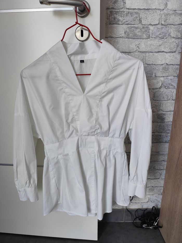 Très jolie tunique Femme ceintrée, ouverte dans le bas, couleur blanche, taille XS. Jamais mise. Rendu très classe.