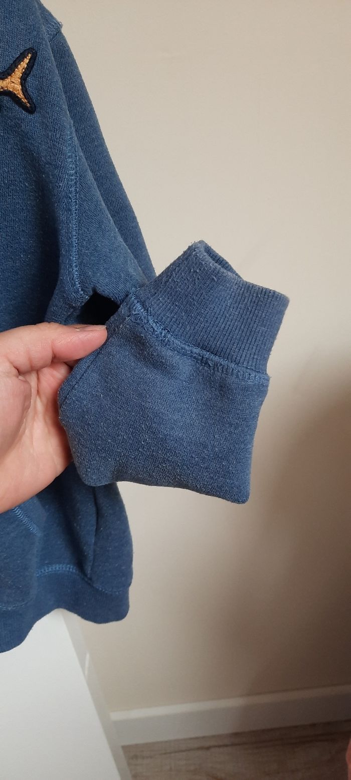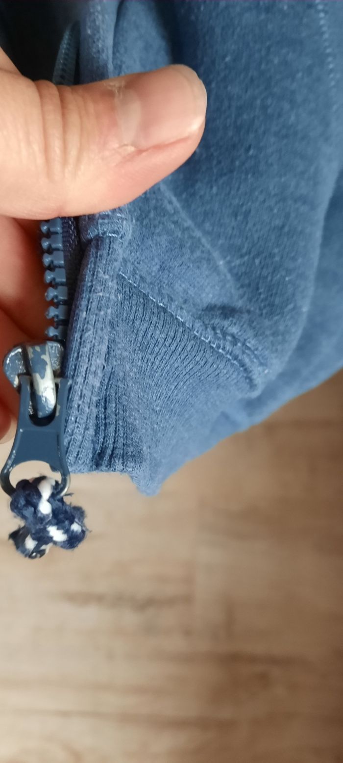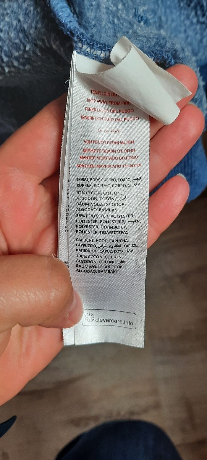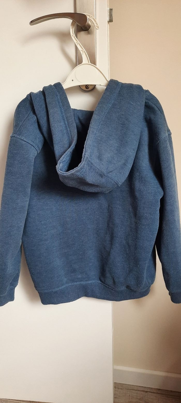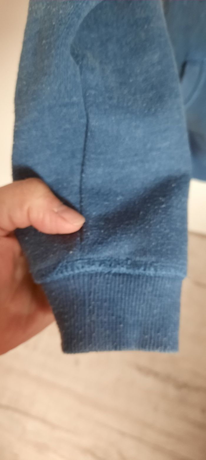 Gilet taille 8 ans marque du pareil au même, pas de tâche pas de trou mais bien porté donc usure normale,bouloche un peu(sûrement dû a la matière), coton et polyester, avec poches et capuche.