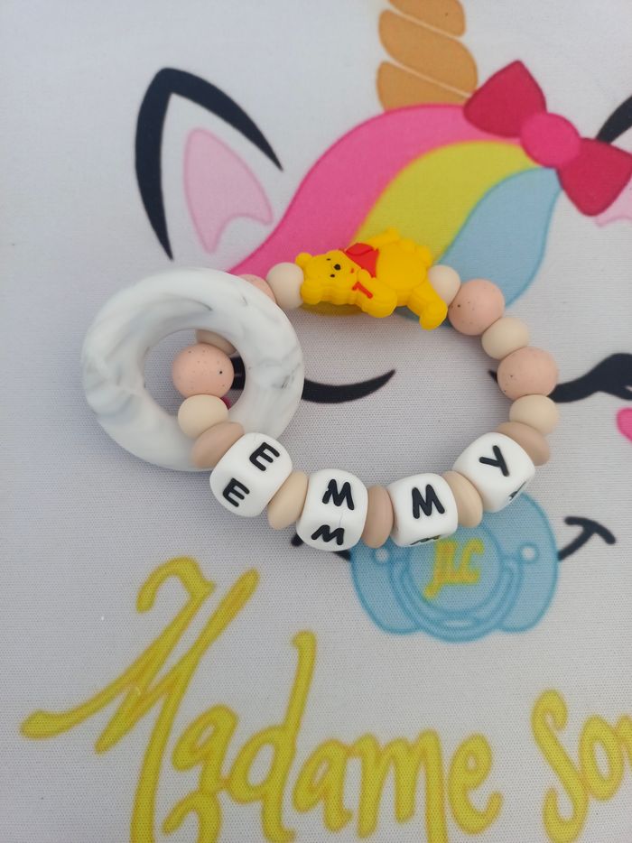 Un anneau de dentition Winnie l'ourson pour soulager bébé durant ses poussées dentaires, sert à être mâchouillé en toute sécurité.