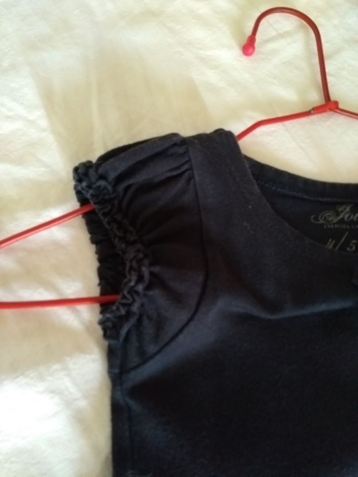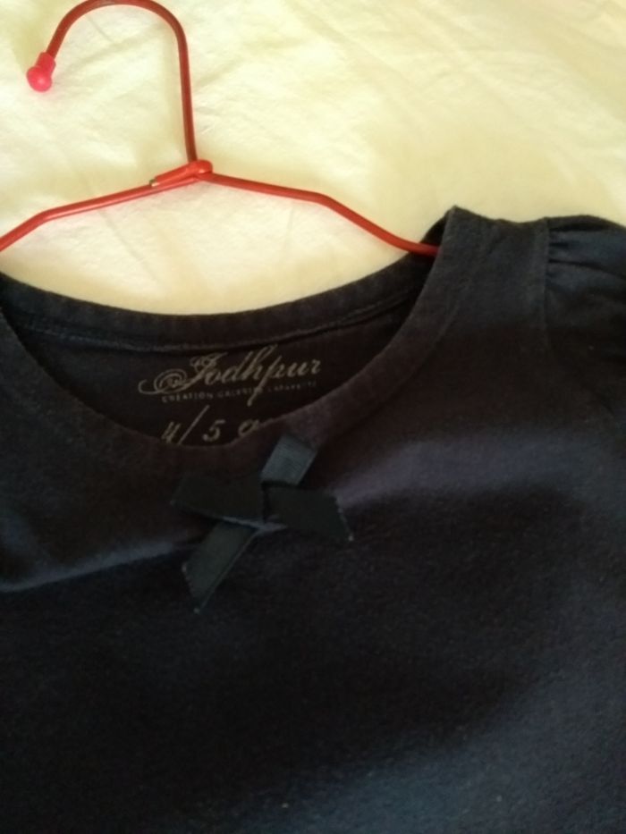 Robe marine. Encolure ronde. Taille 4 ou 5ans. Petites manches courtes. Petit froncé au bas.