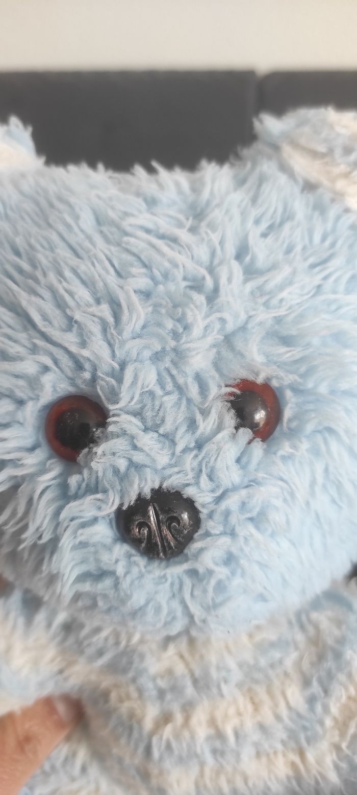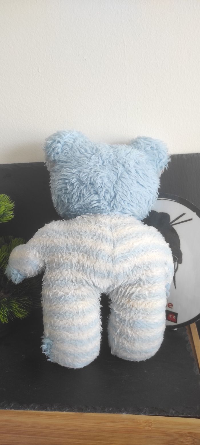 doudou peluche ours bleu blanc rayé rayure ancien vintage koala Bille Marron