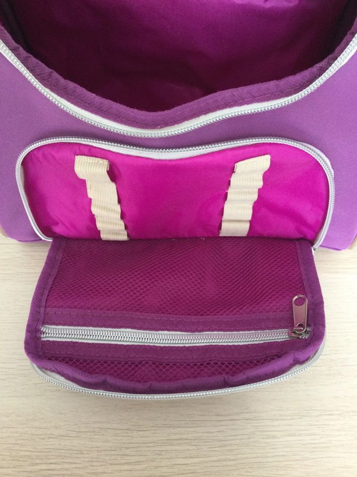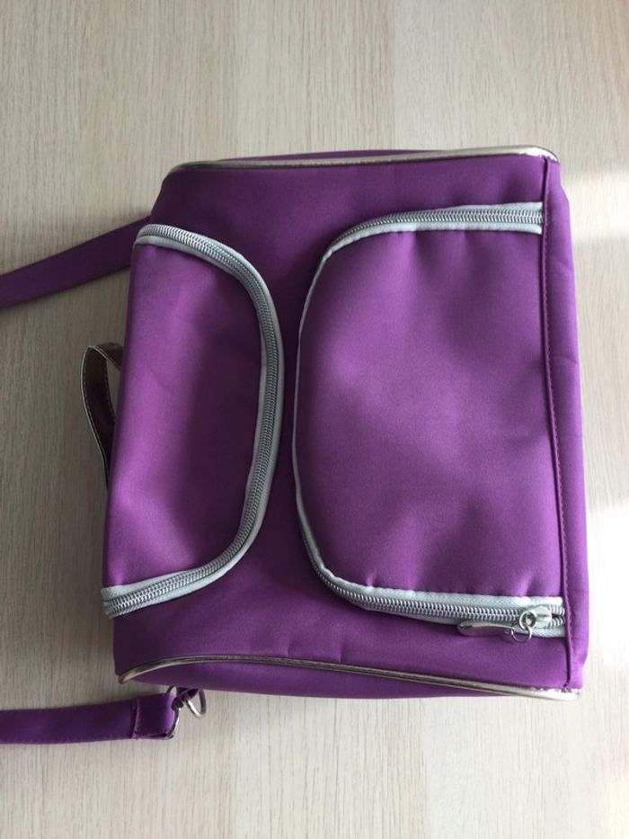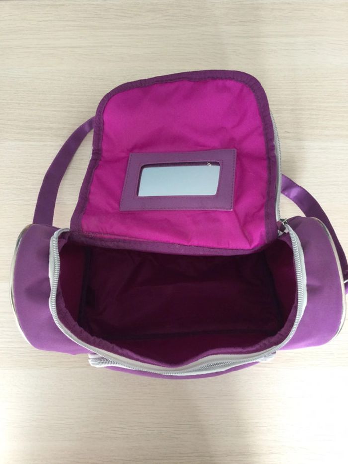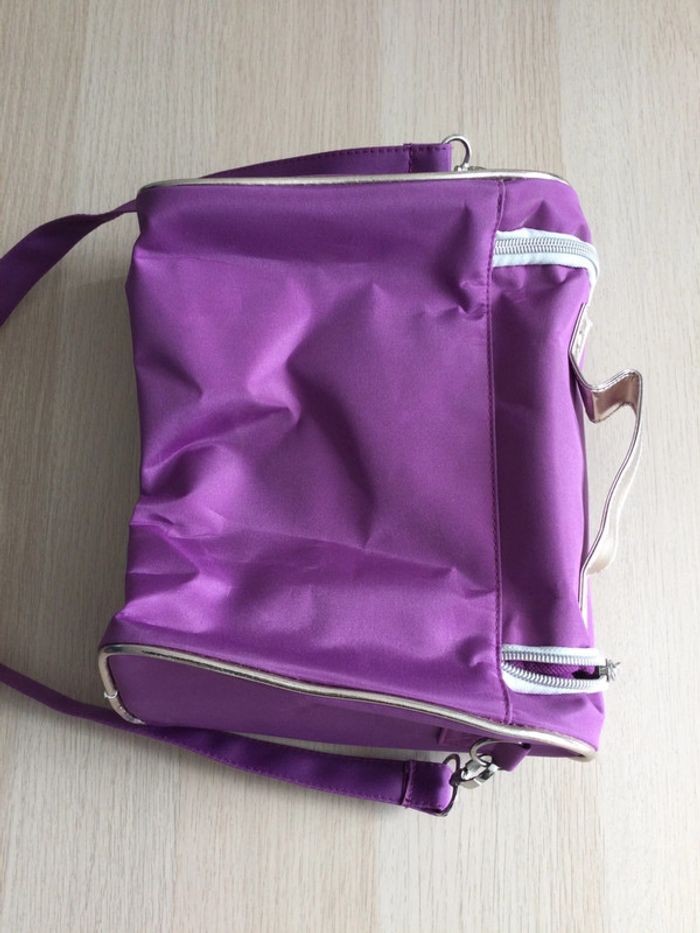 Sac vaniti de voyage / trousse de beauté (utilisé une fois). Dimensions : environ 22 cm de hauteur et 25 cm de largeur. Contient une grande poche fermeture zip avec un miroir, et une petite poche devant fermeture zip qui est un compartiment pour maquillage. Avec bandoulière et hanse.