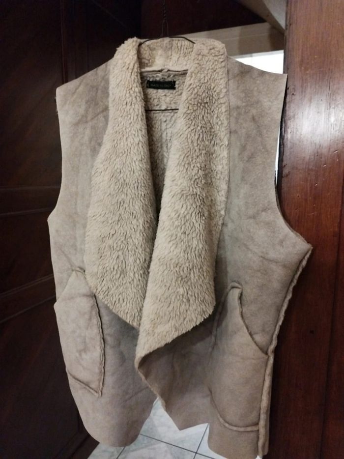 Gilet veston gris coton fausse fourrure M/38 y2k - photo numéro 1