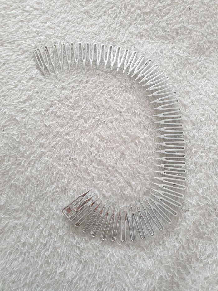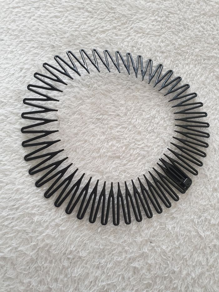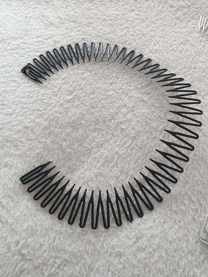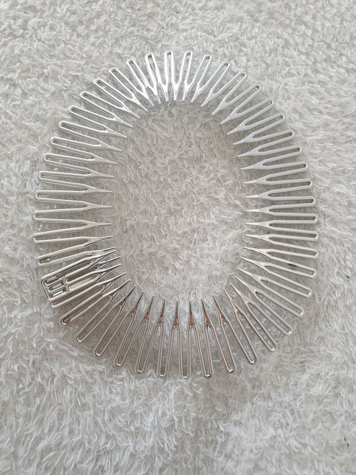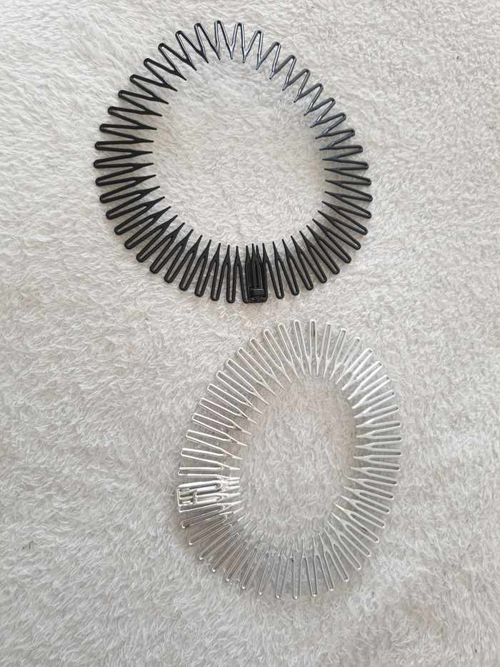 Lot de 2 serre-tête, bandeaux pour cheveux. Noir et argenté. S'ouvre pour être posé correctement dans les cheveux. Comme neuf.