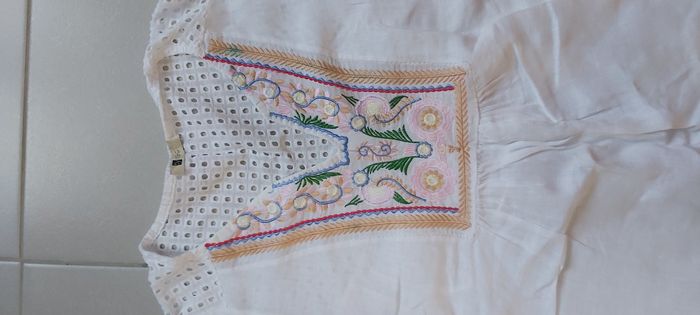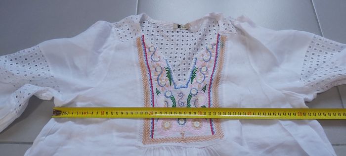 .Haut manche courte Ajouré sur le haut du dos et les manches Légèrement transparent voir photo Etiquette coupée correspond à du XL #carineddiXLfemme