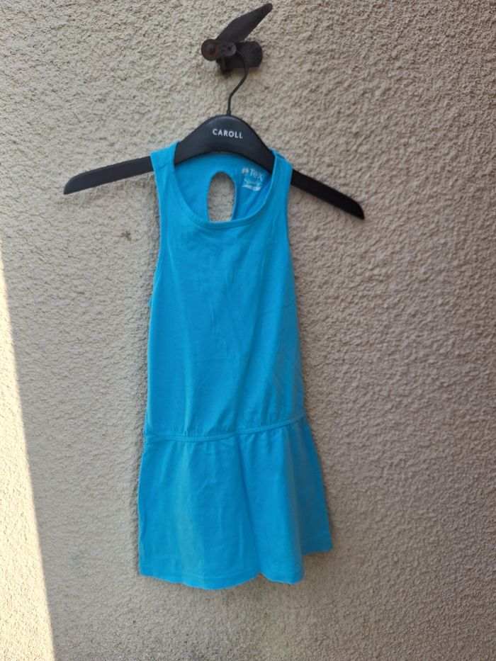 Robe sans manches Marque Tex Sweety Taille 5/6 ans Matière 100 % coton Couleur bleu turquoise unie Taille élastiquée Bretelles dos croisé Très bon état 🚨 Réductions activées sur les lots 🚨 🟡 2 articles -5% 🟠 3 articles -10% 🔴 5 articles et plus -15% #5/6ansfilleevaura76 #robe #5/6ans #tex #été