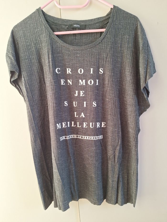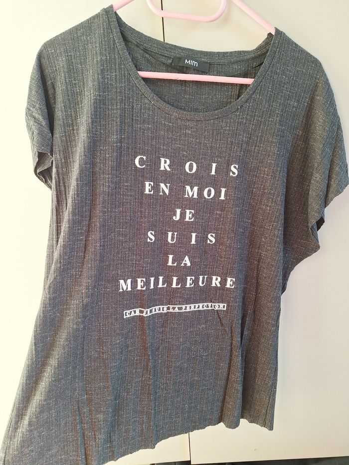 Tee shirt de la marque MIM, très peu porté. Avec inscrit dessus " crois en moi je suis la meilleure car je suis là perfection "