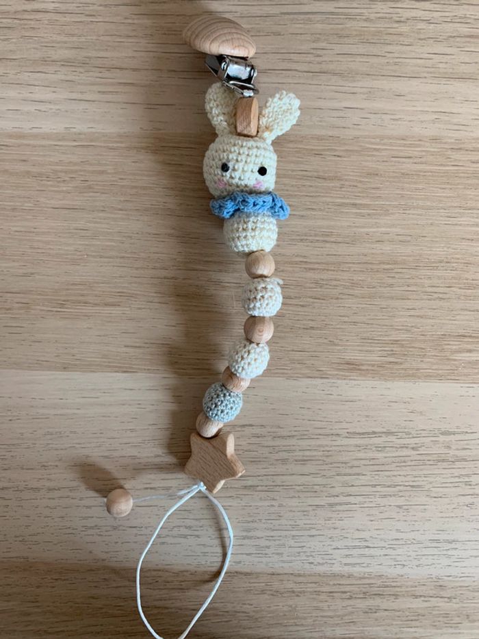 Attache tétine crochet lapin bleu neuf - photo numéro 1