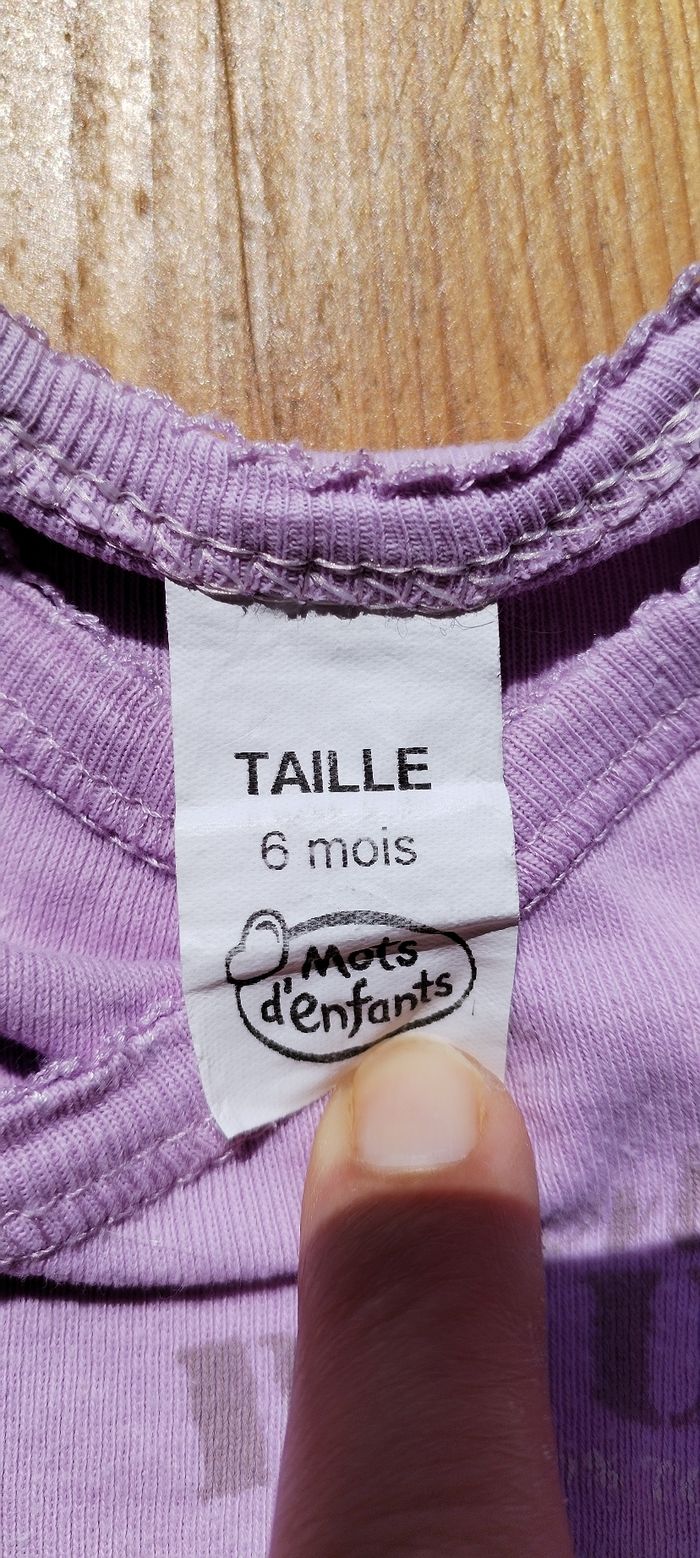 Body violet à manches longues pour fille. Marque Mots d'enfants. Taille 6 mois. Comme neuf. Que mondial relais ou Relais Colis.