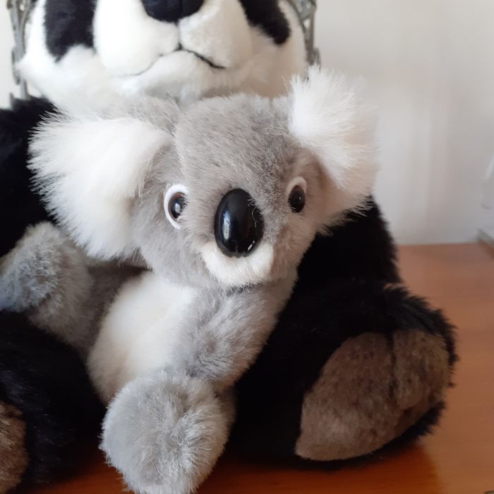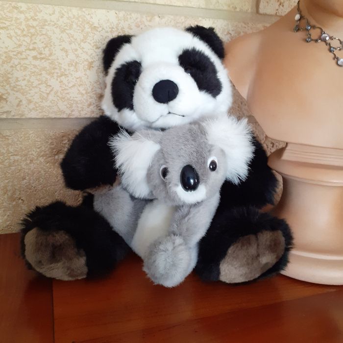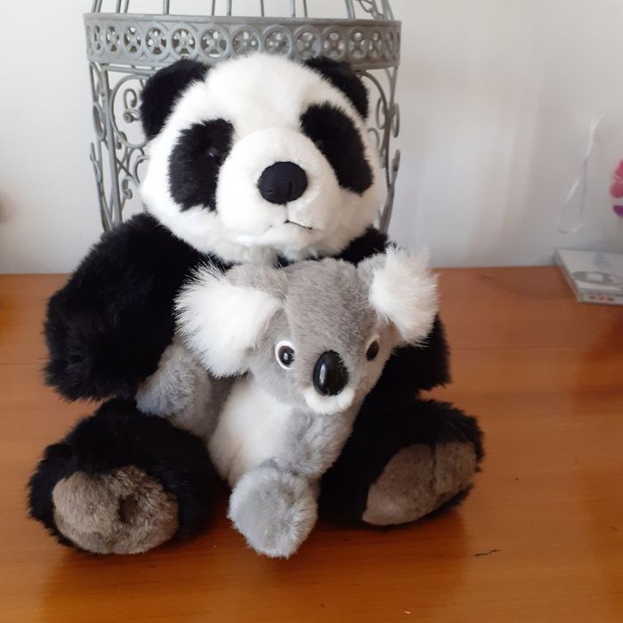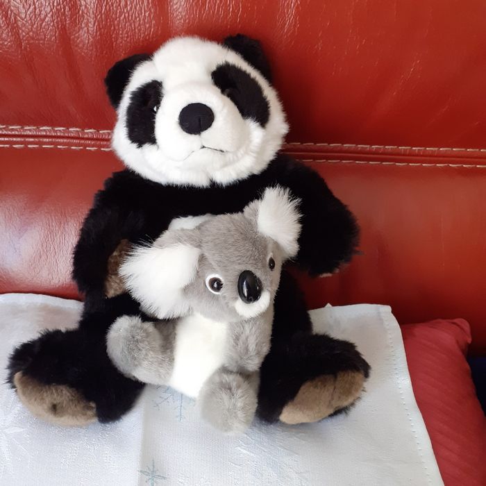 Peluche Panda: entièrement rembourrée; yeux boutons; museau en tissu. Hauteur totale de 30 cm, lavable à 30° + Peluche Koala : entièrement rembourrée; yeux boutons et museau en plastique. Hauteur totale de 14 cm; lavable à 30° // voir photos pour détails