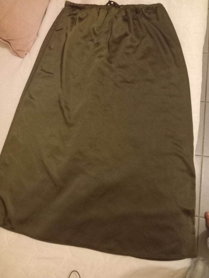 Jupe en satin tendance très bonne état +++porté quelque fois très belle couleur kaki foncé .
