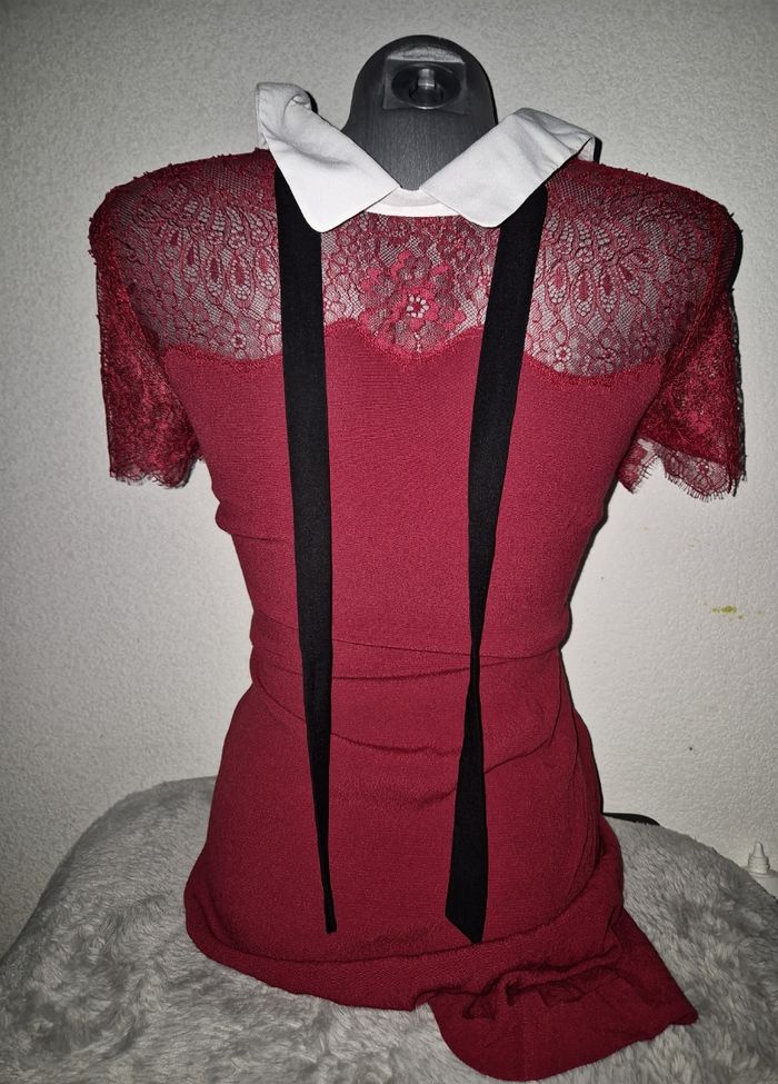 Tunique rouge effet dentelle en excellent état - photo numéro 2