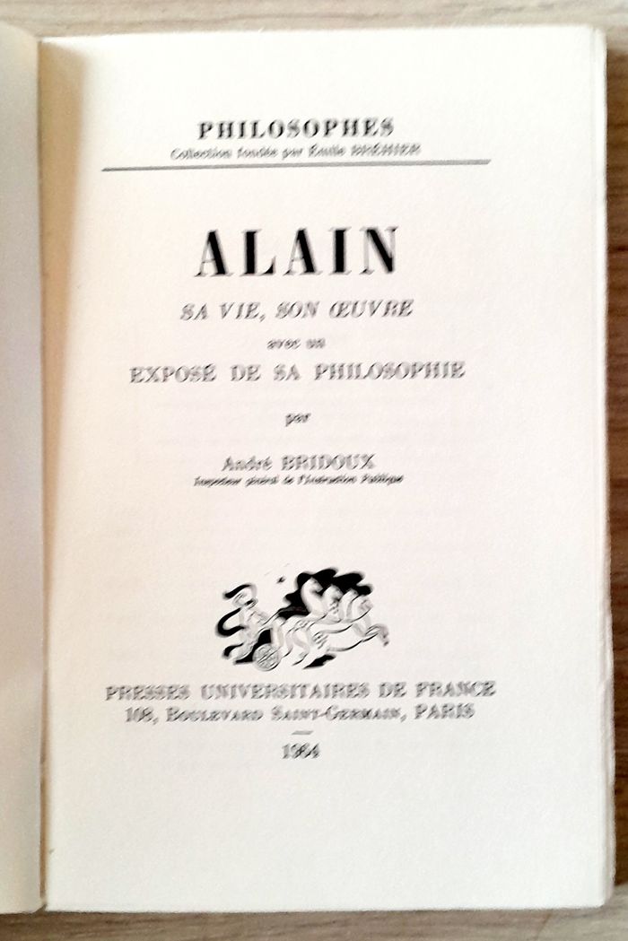 Alain philiosophes sa vie son œuvre avec un exposé de sa philosophie par andré bridoux