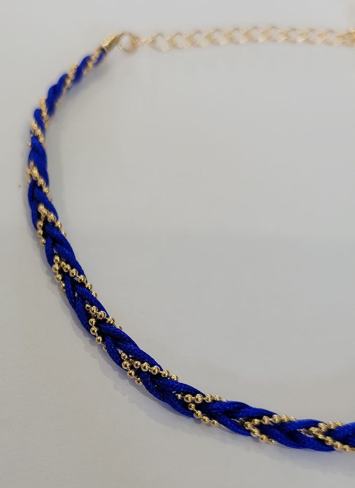 CHAINE CHEVILLE TRESSEE BLEUE DOREE ! NEUVE
