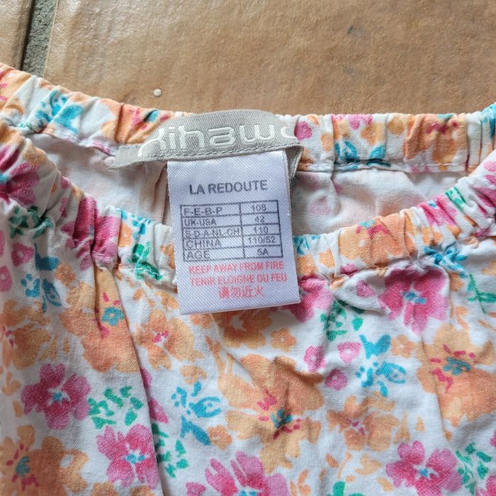 Robe bretelles Kihawo (La Redoute) 5 ans motif fleuri orangé et rose . Portée mais encore en très bon état. Envoi dans la journée en mondial relay ou chronoshop2shop.