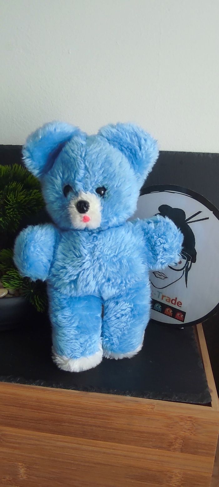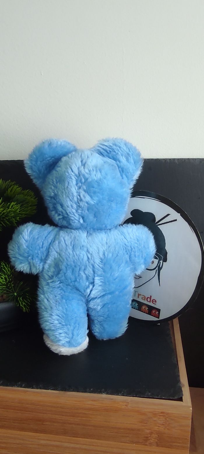 doudou peluche ours souris bleu blanc ancien vintage marron rose bille Yeux