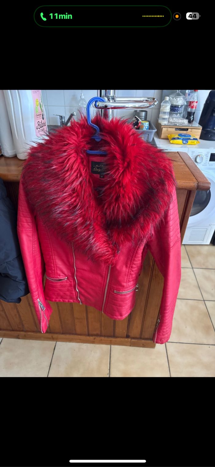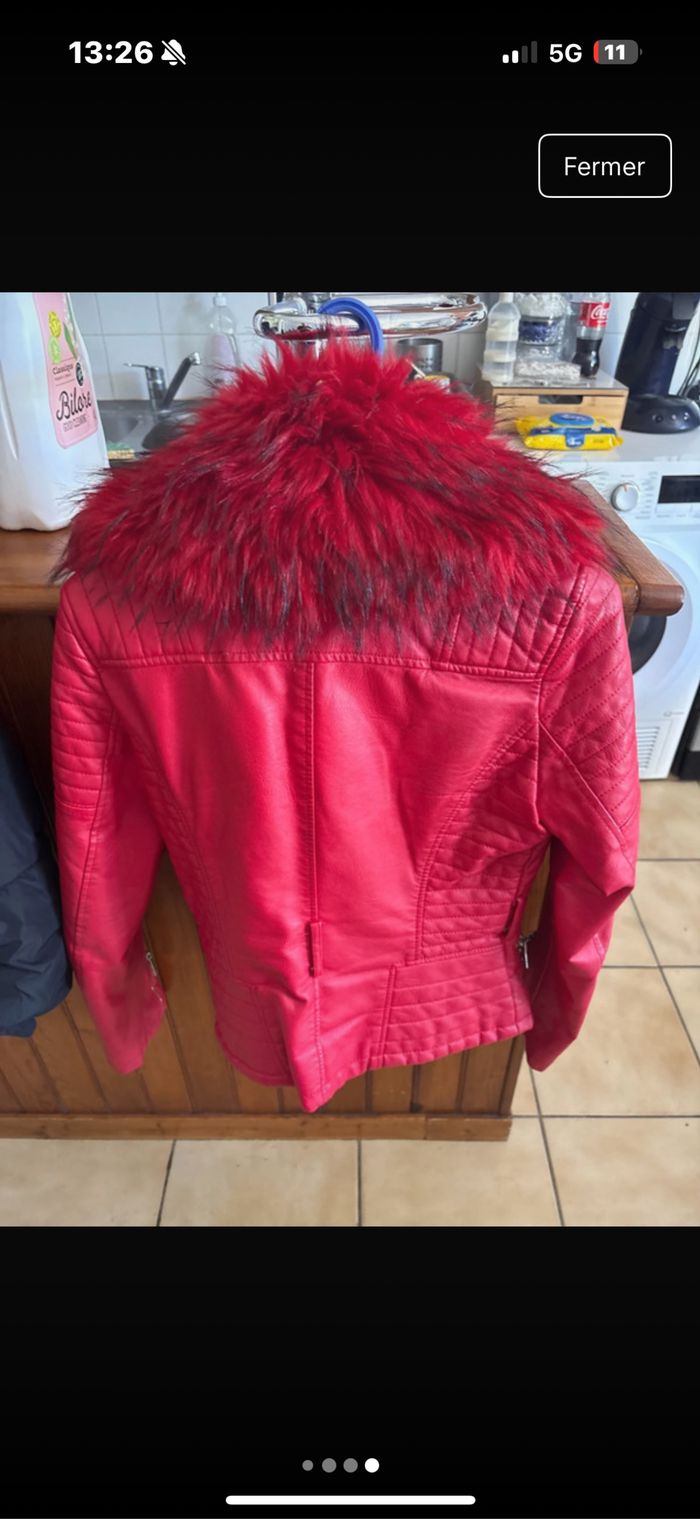 Veste cuir manque la ceinture Fourrure détachable Fourre à l’intérieur Petit accro mais pas méchant voir photo sur la manche