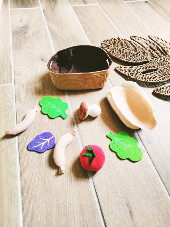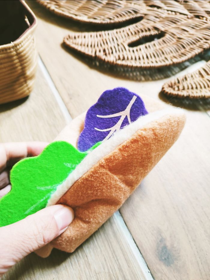 🎀Avec aliments en peluche/tissu : feuilles de salades ,pain sandwich , tranche de jambon , saucisses. ..