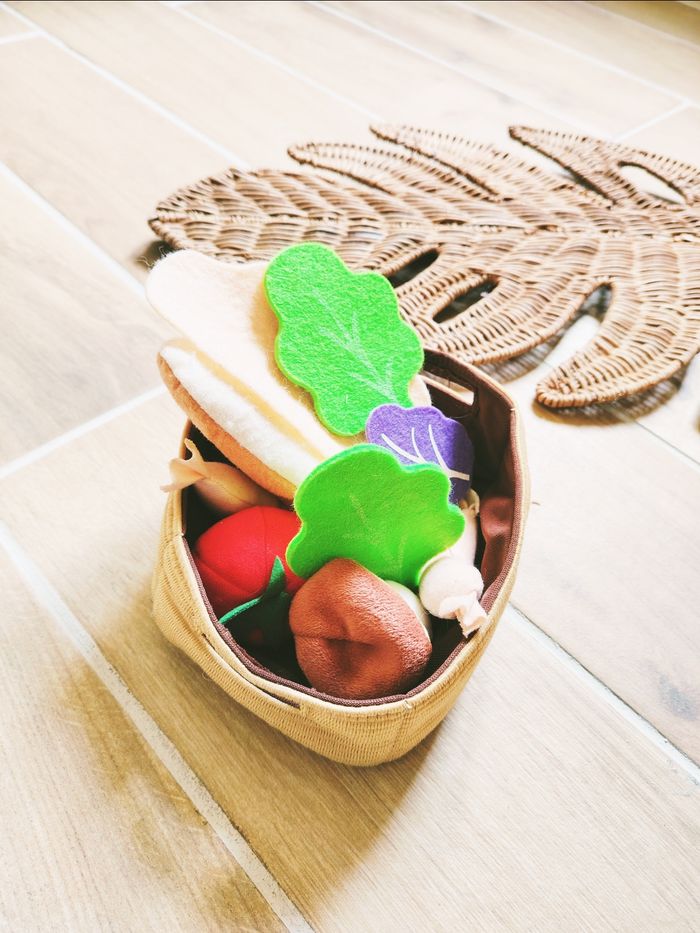 🧺 Dinette panier marron avec sandwich et divers ingrédients en tissu- peluche
