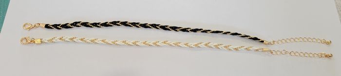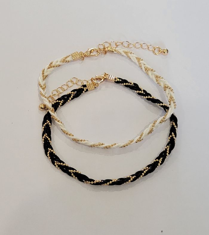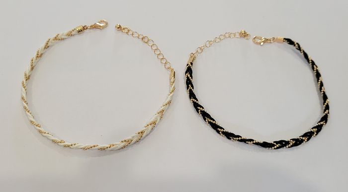 LOT DE 2 CHAINES CHEVILLE TRESSEE NOIRE DOREE + BLANC DOREE ! NEUVE ! - photo numéro 2