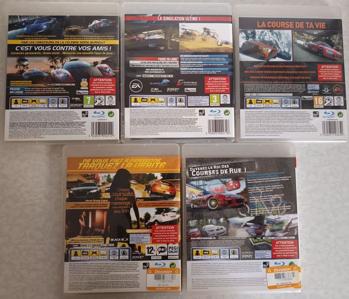 Jeux complet et en très bon état général Collection Jeux Need for speed de 5 jeux complets Playstation 3 comprenant: Need For Speed Hot Pursuit Need For Speed Shift 2 Unleashed Need For Speed The Run Need For Speed Undercover Need For Speed Pro Street