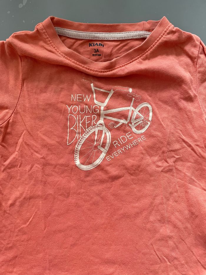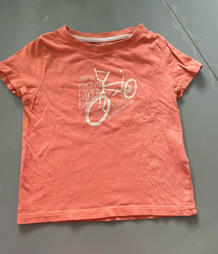 Tee-Shirt garçon T 3 ans Kiabi Couleur saumon Joli dessin vélo et inscription Bon état