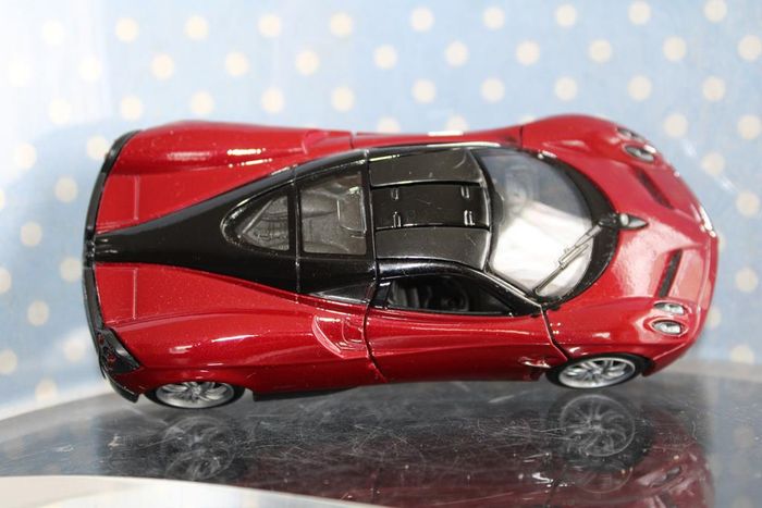 Welly voiture miniature Pagani Huayra Marque : Pagani Modèle : Huayra Echelle : environ 1/32 Couleur : Bordeaux, vitrage clair Intérieur : Noir Chassis : Plastique noir N° : 43756 Fabricant : Welly. Miniature en très bon état. les portes papillons s'ouvrent. Moteur à rétrofriction fonctionnel Pas de manques de peinture sur la carrosserie. les axes de Roues ne sont pas tordus, vitrage intact. Réponds avec plaisir aux demandes d'informations complémentairre Réponse rapide Envoi soigné dans les meilleurs délais